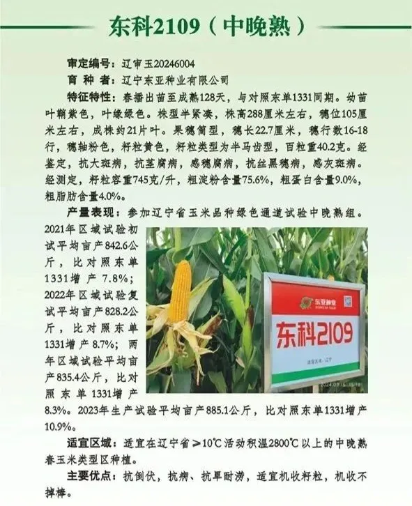 東單1331、東科2109入選朝陽市2026年玉米主推品種名錄
